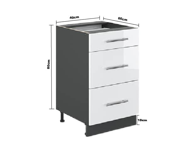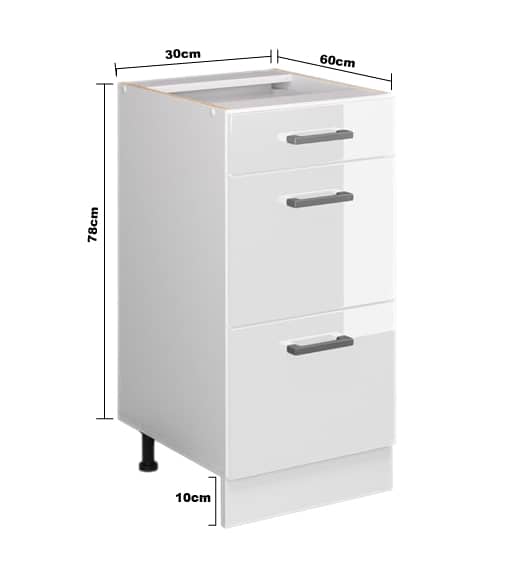 Meuble bas de cuisine Vicco R-Line brillant avec tiroirs.