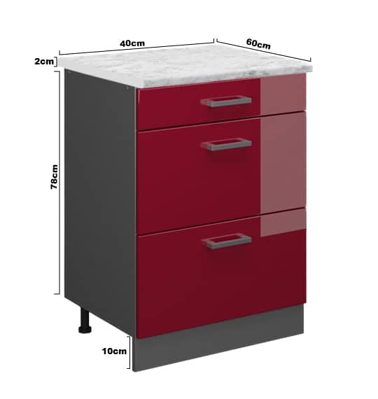 Meuble bas de cuisine Vicco R-Line brillant avec tiroirs (blanc, gris, bordeaux)